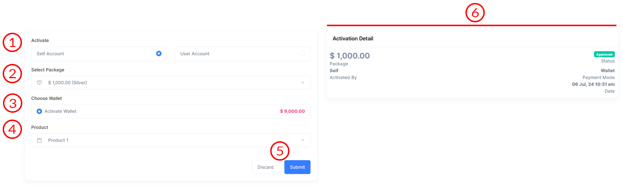 Users begin the activation process by selecting a package from the available options, which may include for e.g. Silver, Gold, Diamond, or Platinum packages, each offering distinct benefits.