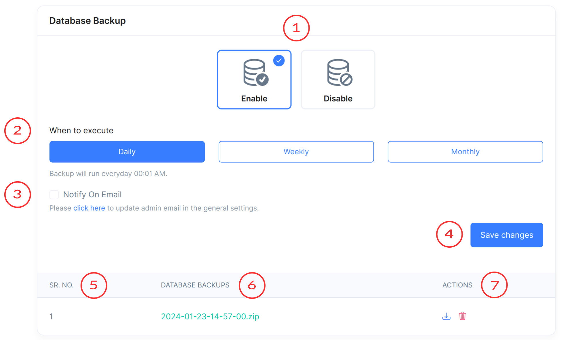 Choose the frequency of database backup execution - daily, weekly, or monthly.