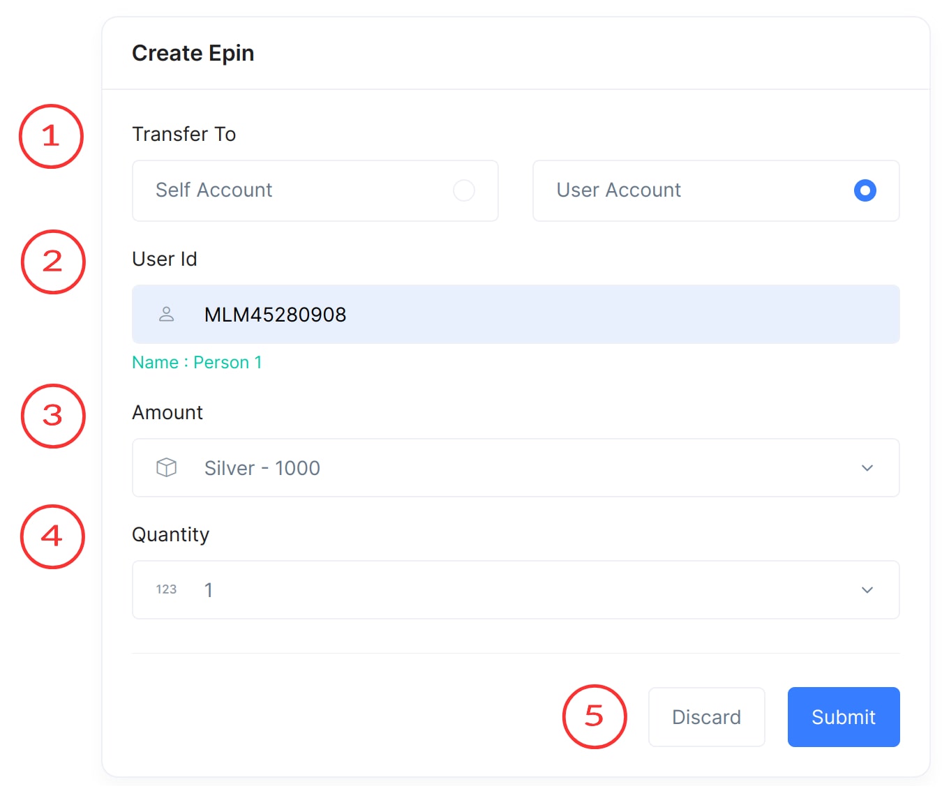 The Admin Create Epin allows administrators to create epins for self and for other users in MLM Software.