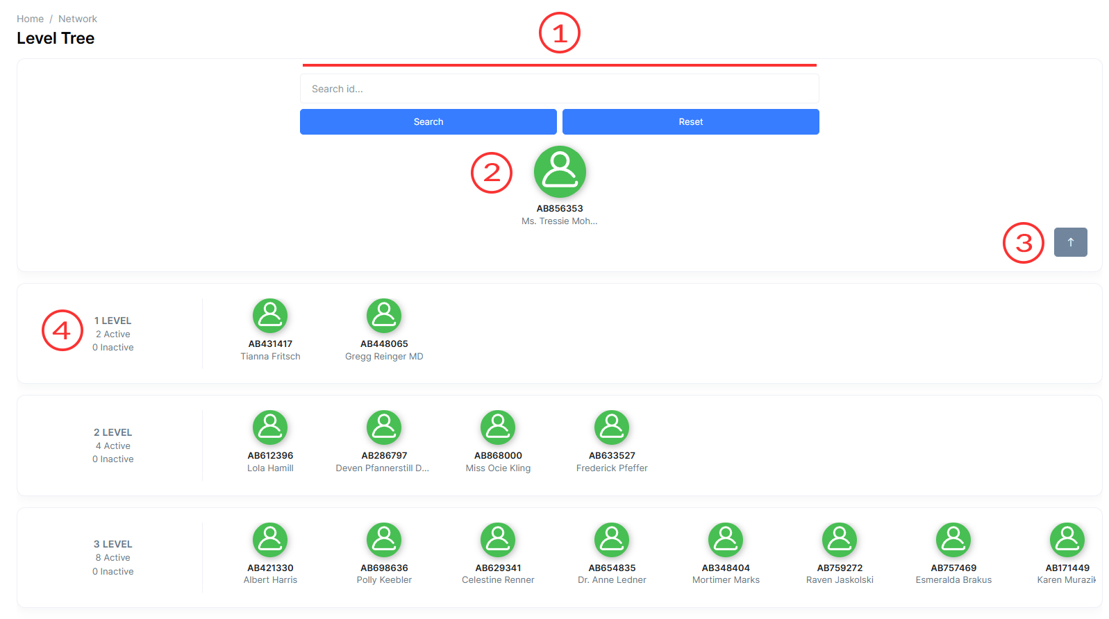 The level tree is provided to see the downline of a person in the level structure in MLM Software.