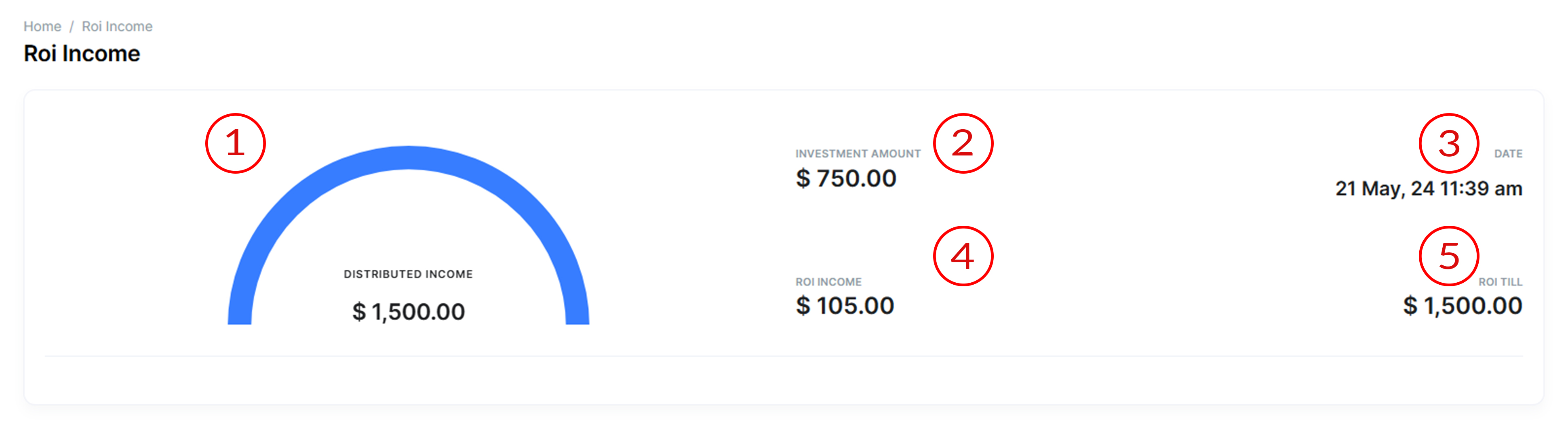 This semi-circular gauge visually represents the total distributed income. The value at the center of the gauge indicates the total amount of distributed income